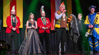 Der Präsident der Vereinigung Badisch-Pfälzischer Karnevalsvereine e.V. Jürgen Lesmeister (am Mikrofon) eröffnet die Veranstaltung und grüßt die anwesenden Vereine und die sehr zahlreichen Besucher