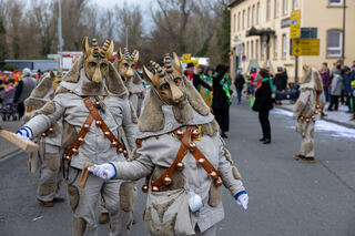 Die Rhosemer Stockriewer ziehen beim Narrensprung durch Ketsch.