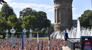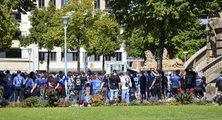 Vorher sammelten sich die Fans des SV Waldhof Mannheims am Mannheimer Wasserturm.