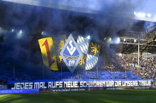 Fans des SV Waldhof Mannheims am Wasserturm.