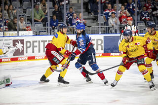 Stefan Loibl von den Adler Mannheim versucht einen Treffer zu erzwingen. Letztlich gelang nur noch Matthias Plachta der Ehrentreffer.