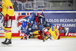 Intensive Zweikämpfe im Spiel der Adler gegen Düsseldorf.