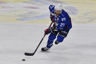 Mannheims Kris Bennett (Nr.21) am Puck.