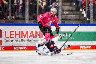 Cole Maier (Nürnberg) mit Kris Bennett (Mannheim). Foto © PIX-Sportfotos