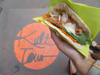 Der orangene Kreidekreis ist das Erkennungszeichen für die Ausstellungsorte der KultTour.