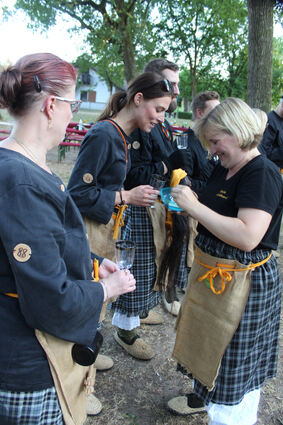 Nadine Böhm zeigte den Neuhexen womit sie getauft werden.