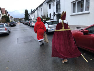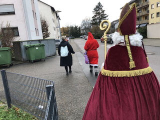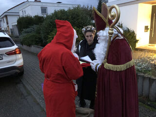 Nikolaus Dieter Endres braucht etwas länger. Die Betreuerin Diana Weber leckt schnellen Schritt an den Tag. Barbara Schönfeld in ihrer Rolle als Knecht Ruprecht versucht mitzuhalten.