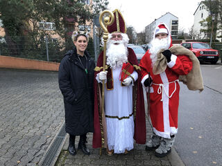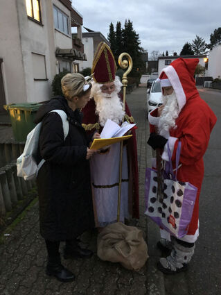 Betreuerin Diana Weber erklärt dem Nikolaus, worauf er bei dem nächsten Termin achten soll.