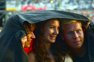 Trotz teils widriger Wetterverhältnisse genießen die Fans das Konzert.