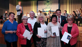 TBG Germania: Auch hier werden die Vorstände geehrt. Auf dem Foto v.l.: Bürgermeister Stefan Weisbrod, Werner Kief, Claudia Butz, Amelie Klein, Sabine Petzold und Uwe Schuppel.