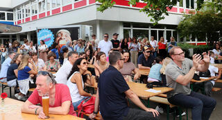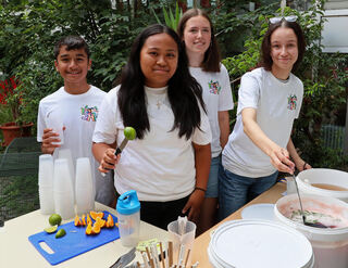 25.07.2025, Das Dietrich-Bonhoeffer-Gymnasium (DBG) Eppelheim feiert sein traditionelles Eichenfest am letzten Freitag im Schujahr. Am "SMV-Cocktailstand" gibt es alkoholfreie Getränke von Ashton (v.l.), Aaliyah, Clara und Jasmine (Schülersprecherin).