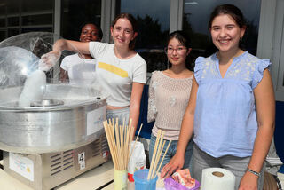 Bei Emy (v.l.), Lara, Miyu und Noémie gibt es frisch zubereitete Zuckerwatte.