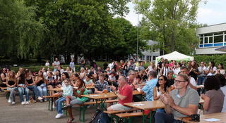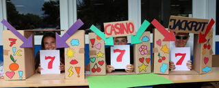 Den Casinostand "Human Jackpot" betreuen Nina (v.l.), Marlene und Filip.