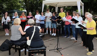Auftritt vom "oh!-Chor" unter der Leitung von Birgit Hatzfeld (li.) und Gudrun Rahn am Klavier.