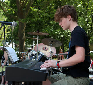 Julian Lewin begleitet den Uh!-Chor auf dem Keyboard.