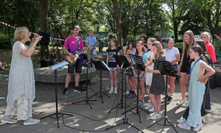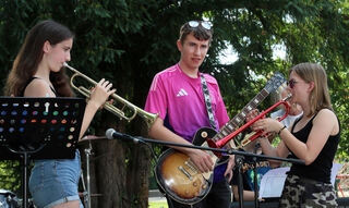 Das Dietrich-Bonhoeffer-Gymnasium feiert sein traditionelles Eichenfest. Sarah, Paul und Helen umrahmen es musikalisch.