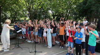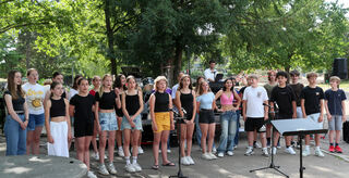 der UH!-Chor der fünften bis siebten Klassen, die von Birgit Hatzfeld geleitet werden.