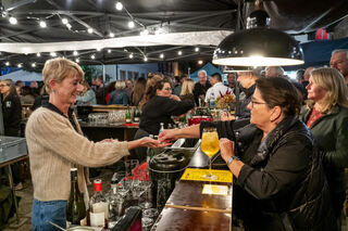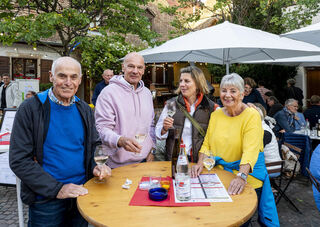 Am Stand des Lions Club Speyer ist ebenfalls gut was los. Uwe (Geske) genießt umringt von Freunden gute Getränke