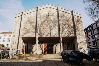 Von außen wirkt die Kulturstätte wie ein Hochbunker.