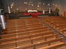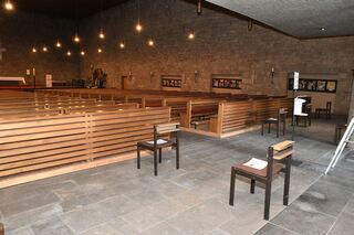 Im Innenraum der Christkönigkirche wurden die Kirchenbänke ausgebaut, damit der alte Boden entfernt und neuer Bodenbelag verlegt werden kann.