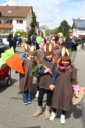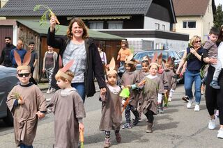 Die Kinder des Kindergartens Villa Kunterbunt sind als Stallhasen verkleidet...