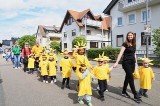 ... und die Friedrich-Fröbel-Kinder sind als strahlende Sonnen verkleidet.