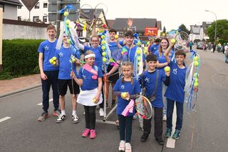 Außergewöhnliche Accessoires: Der Eppelheimer Tennisclub marschiert mit seiner Jugend mit.