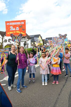 Die Klasse 2a der Theodor-Heuss-Schule verbindet Frühling und Sommer mit Schmetterlingen und hat entsprechend tolle Kostüme gebastelt.