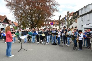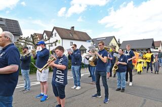 Der Musikverein Plankstadt gibt ein Platzkonzert an der Mozartstraße und begleitet die Umzugsteilnehmer damit.