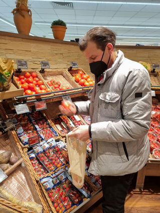 Nachhaltigkeit fängt beim Einkauf an: Wo es möglich ist, wird verpackungsfrei gekauft - Obst und Gemüse kommen in Netze statt in Plastikbeutelchen.