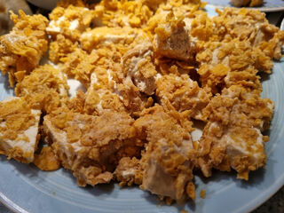 "Tofu Wings" - mit Cornflakes ummantelt.
