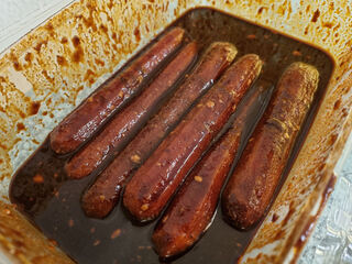 Würstchen? Mitnichten. Das sind in Marinade eingelegte Möhren, die die Würstchen im Hot Dog ersetzen - und die schmecken richtig prima! Das Rezept gibt es unter www.schuerzentraegerin.de.