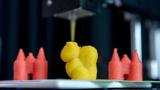 Marzipanfiguren aus der weltweit ersten Plug and Play 3D-Food Druckmaschine, die 2016 auf der Branchenkonferenz der Norddeutschen Ernährungsindustrie vorgestellt wurde.