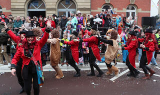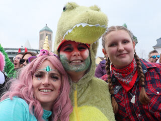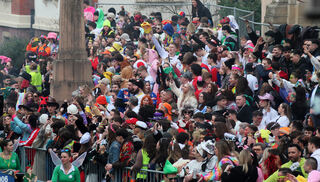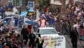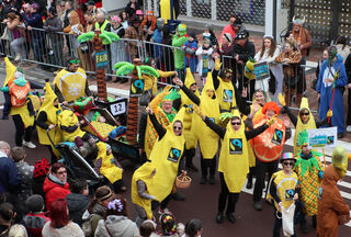 Die Zuschauer am Rande des Umzugs feiern fleißig mit.