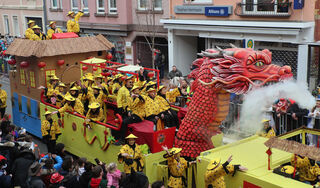Vorsicht, der Drache schluckt alles: Der Motivwagen des FCC Fides Carneval-Club e.V.
