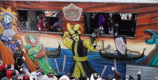 Der Motivwagen der Hambrigger Narrenzunft "Karneval in Venedig" mit der Nummer 20 kommt super an.