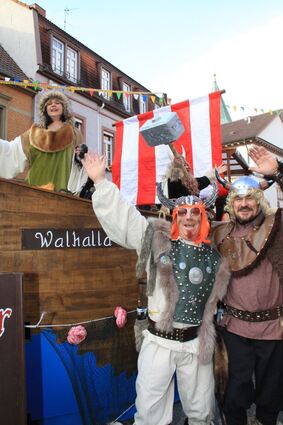 Auf dem Elferratswagen der Kollerkrotten herrschte tolle Stimmung, wie auch auf dem Marktplatz.
