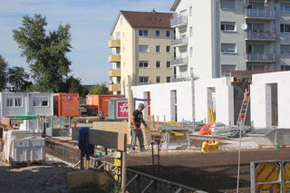 Die Rohbauer sind bei der Arbeit. Hier werden Werkstatt und Unterstand für die Fahrzeuge der Freiwilligen Feuerwehr sein.