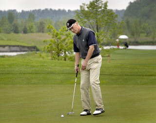 „Das wird schon mit dem Wetter“: Franz Beckenbauer beim „RBU Charity Golf Cup“ im Mai 2005 als Wetterprophet in St. Leon-Rot. Kurze Zeit später hört der Regen auf.