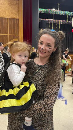 Zum ersten Mal auf einem Maskenball: Thalia (1) als Bienchen mit ihrer Mama Ines.