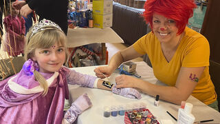 Hier verschönert Pumukl Diana Stutzmann mit einem Glitzertattoo Prinzessin Laura (9).