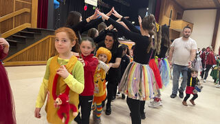 Bei der Polonaise sind beim Kindermaskenball alle am Start.