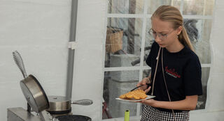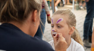 Sophie lässt sich beim Kinderschminken als Hase bemalen.