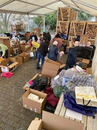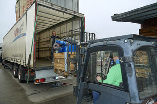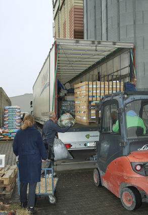 Der Hilfstransport für behinderte Kinder aus der Ukraine wird beladen