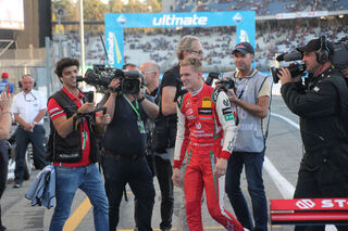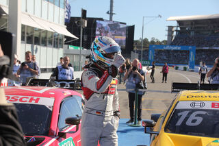 Der Sieger des DTM-Samstagsrennen Renne Rast freut sich.
