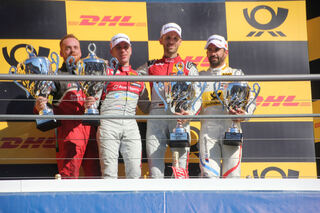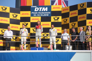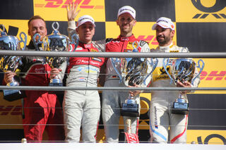 DTM Siegerehrung am Sonntag: Dritter Marco Wittmann, in der Mitte Rene Rast und rechts Garry Paffett.