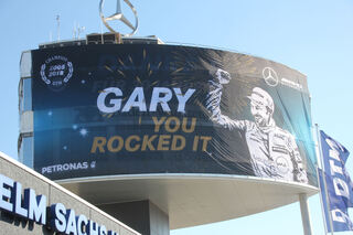 Ein rießiges Banner für den neuen DTM Meister prangte auf dem Baden-Württemberg-Center.