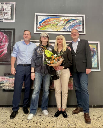 Gustav Armbrust und seine Frau Andrea mit Oberbürgermeister Marcus Zeitler und Wirtschaftsförderer Donald Pape-Rese.