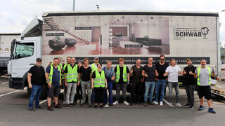 Angekommen in Euskirchen: Noch sind die Bodenbeläge aus Hockenheim auf dem Lkw.