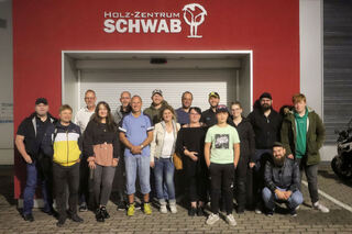 Bereit zur Abfahrt zu nachtschlafender Zeit: Um 5.30 Uhr treffen sich die freiwilligen Helfer vorm Holz-Zentrum Schwab.